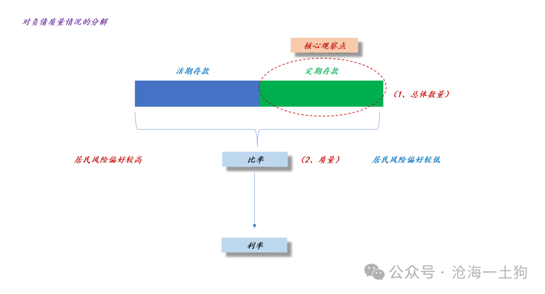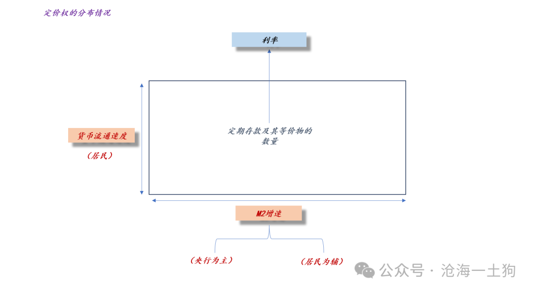 如上图所示,居民的权柄很大,直接控制货币流通速度。当居民风险偏好上升时,更多的存款转化成活期存款,利率上升;反之,更多的存款转化成定期存款,利率下降。