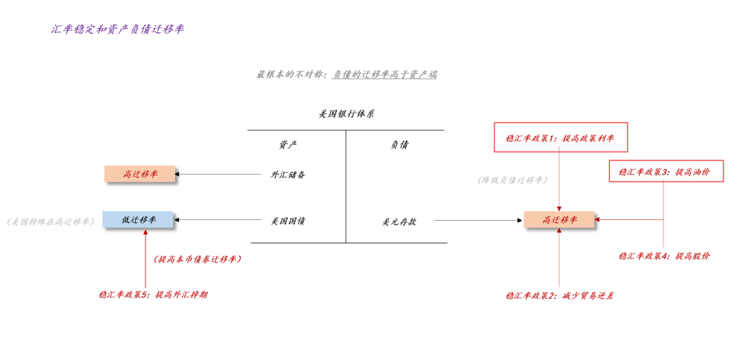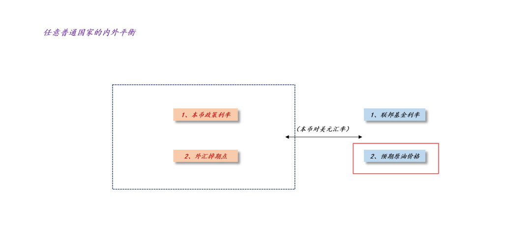 对任何国家而言,币值基本稳定是天然约束。如上图所示,为了维持本币基本稳定,一国政府在负债端有4个基本措施:1、提高政策利率;2、提高油价;3、减少贸易逆差;4、提高股价。
