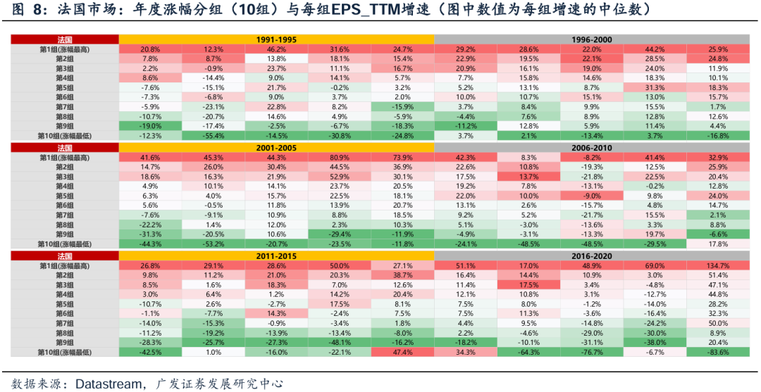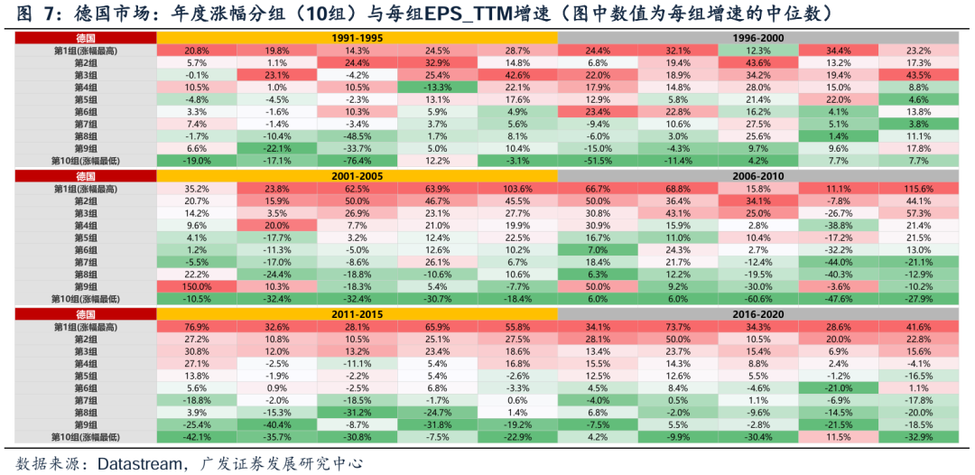 第二,对T-1年增速>80%标的,同样按T年的增速降幅(降幅=本年/上年-1)分10档,降幅分别从-10%到-100%。