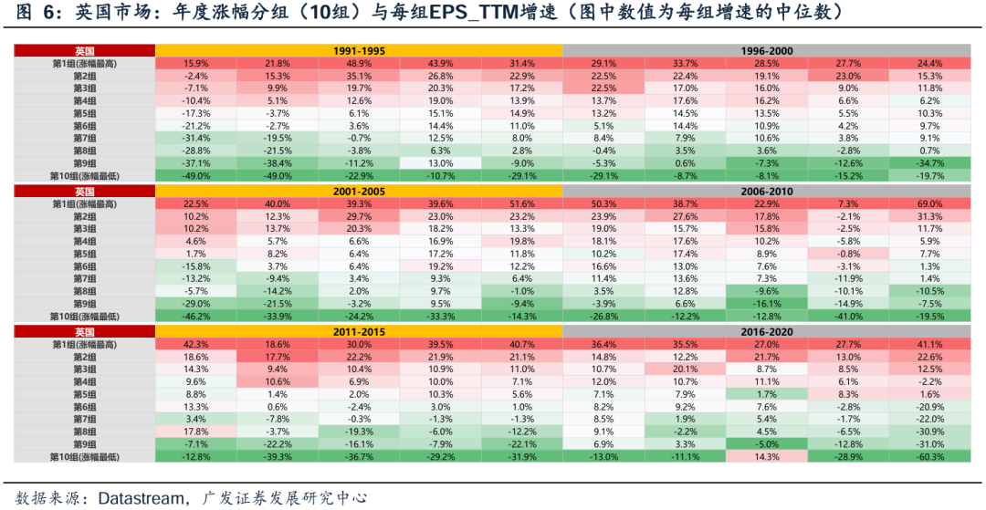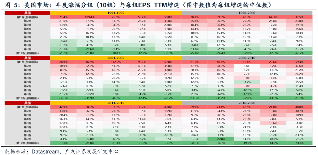 同样地,如下图(5-11),以年度单位衡量,景气度高低决定相对收益高低,在全球股市来看具有普适性。也就是说,追求变化最快的事物,不管是技术爆发还是产业革命,都是人性使然,景气投资的执念从未磨灭,古今中外皆如此。