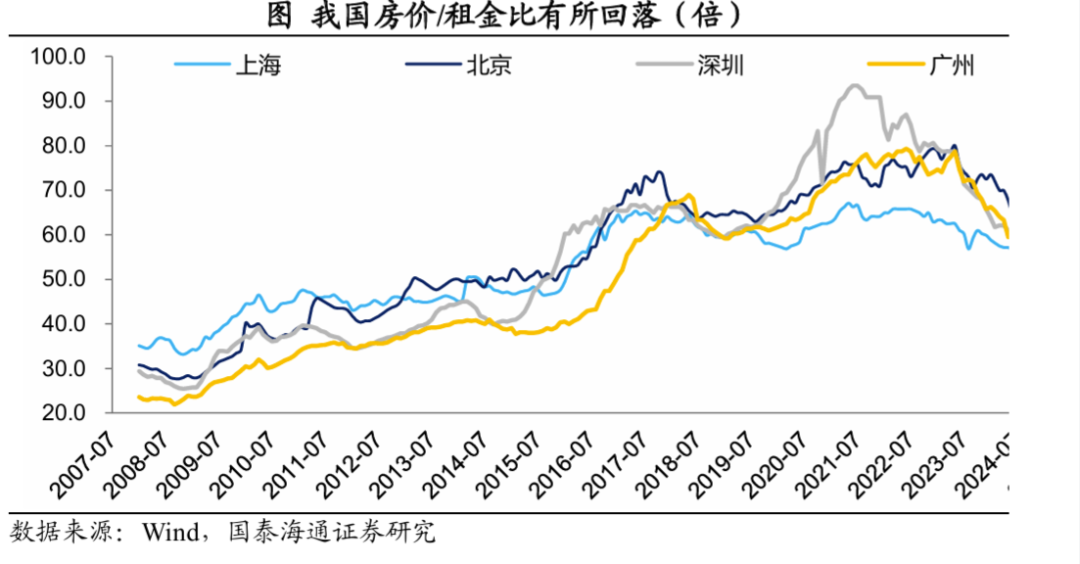 所以要稳住房价,单纯靠租金回报率回升到历史高位,会是个漫长的过程。我们认为最重要的是稳住房价的预期。而房价的预期很大程度上决定于宏观通胀的预期,因为房地产、股票、债券等资产价格变化本质上是实体经济的“映射”。