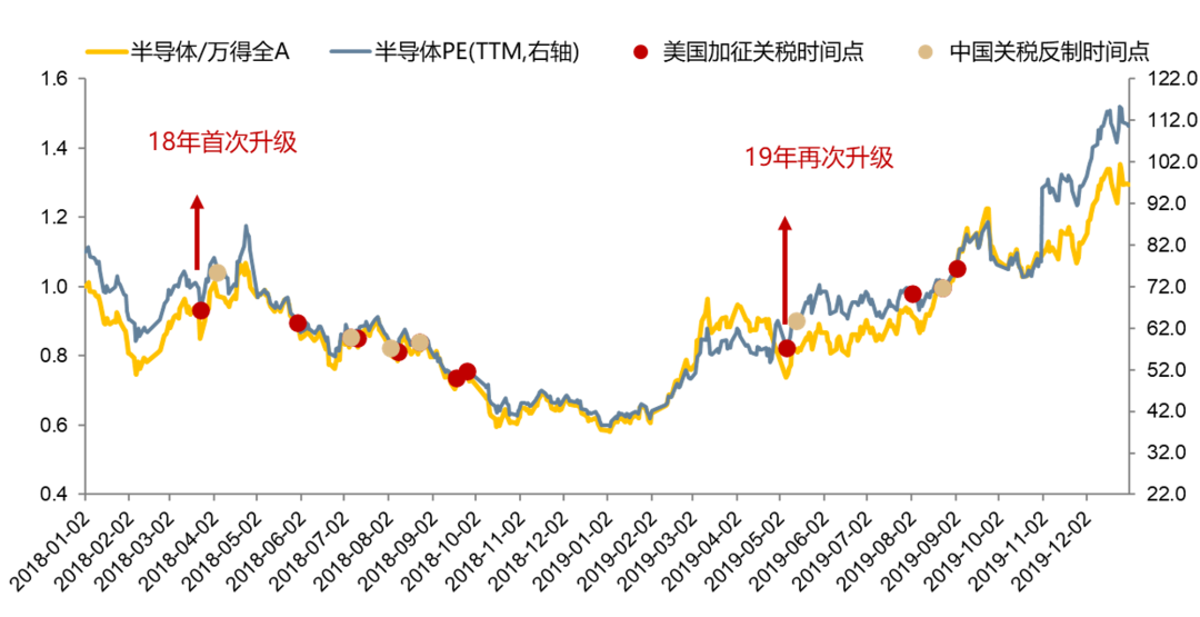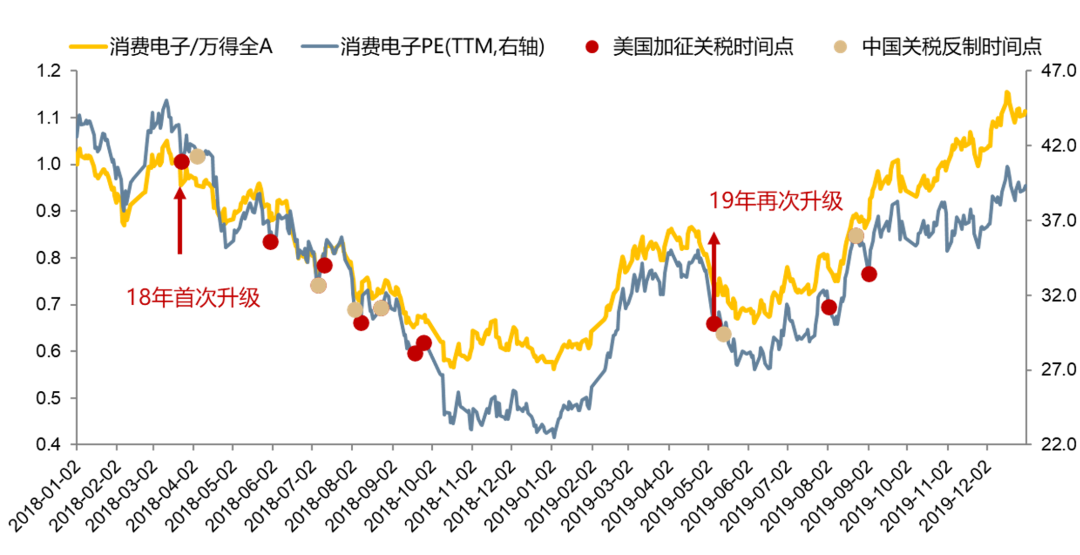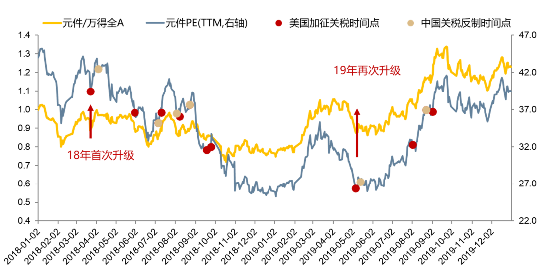 在18-19年贸易摩擦升温的过程中,19年5月关税升级时期A股的估值水平也高于18年下半年。