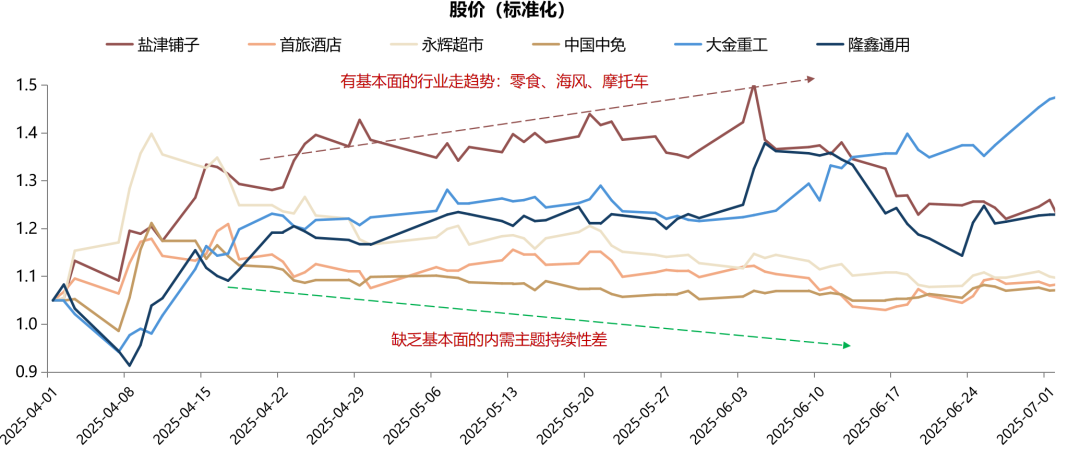 总结来看,无论是第一阶段的内需/非美出口链、还是第二阶段的国产替代/对美出口链,单纯进行关税交易的持续性均不长、而处于基本面向上周期会是好的买点,无论是内需的零食、非美出口的海风/摩托车,还是对美品牌出口的龙头,均可在砸坑后走趋势性行情。