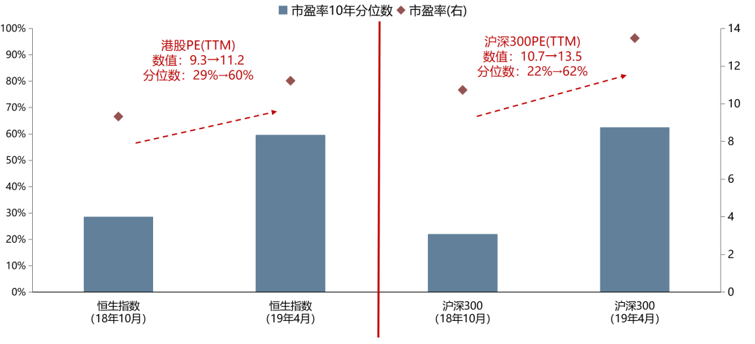 (二)如果顾虑当前A股估值较4月更高,可以参考19年相较于18年的情况