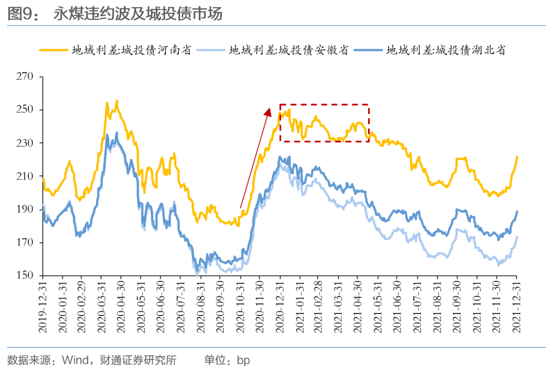 此外,地方国资在危机发生时的救助意愿远低于市场预期,很快导致整个城投债市场都受到冲击,2020年末,城投债利差大幅走阔,并且河南城投债利差在2021年上半年持续在高位震荡。