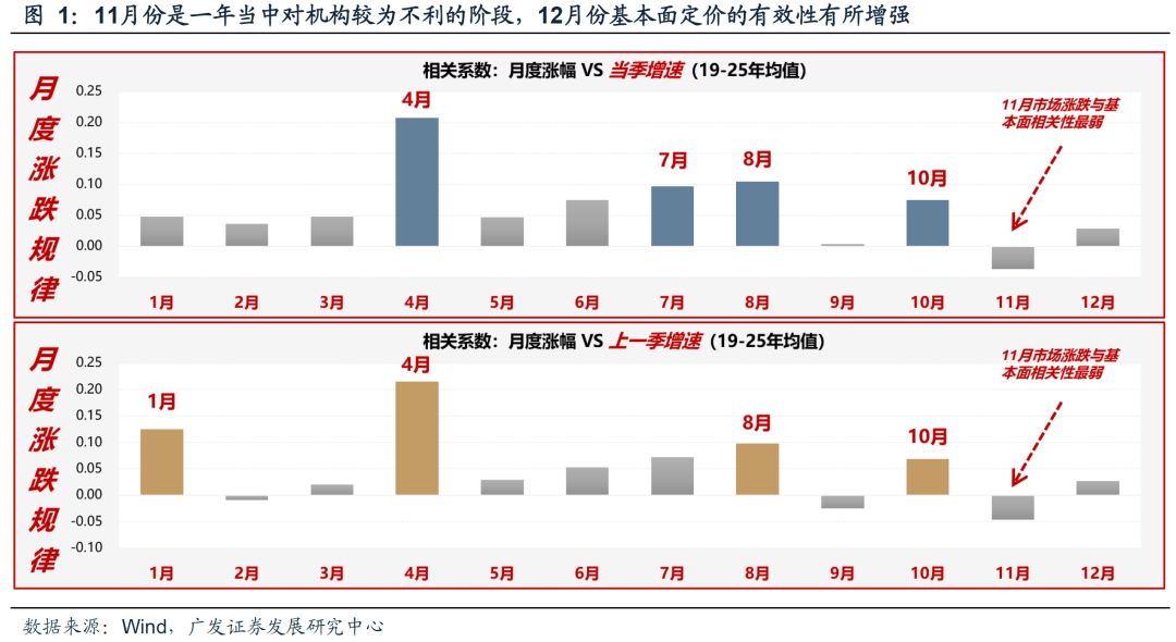 过去20年,市场在12月涨跌各半,wind全A的上涨概率为57%。但是,相较于11月“最不基本面”,进入12月之后,基本面定价的有效性会逐步加强。
