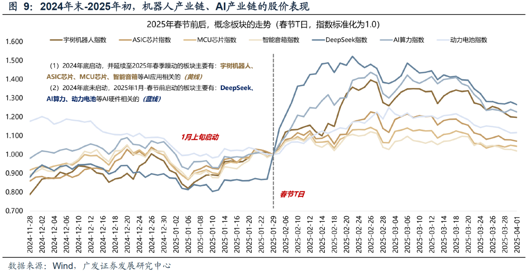 参考25年的AI、机器人、创新药等产业主线,景气预期的市场共识不断增强,历史上的产业主线在年末、春季如何表现?