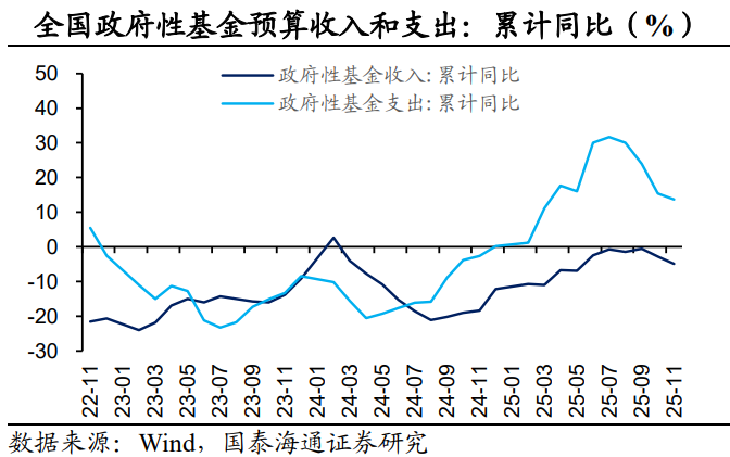 11月税收收入增速回落,支出降幅收窄,但增速偏低。政府性基金收入低位运行,主要与房地产市场疲软有关。随着专项债结存限额下达,政府性基金支出增速回升。展望2026年,积极财政或将“主动靠前发力”。