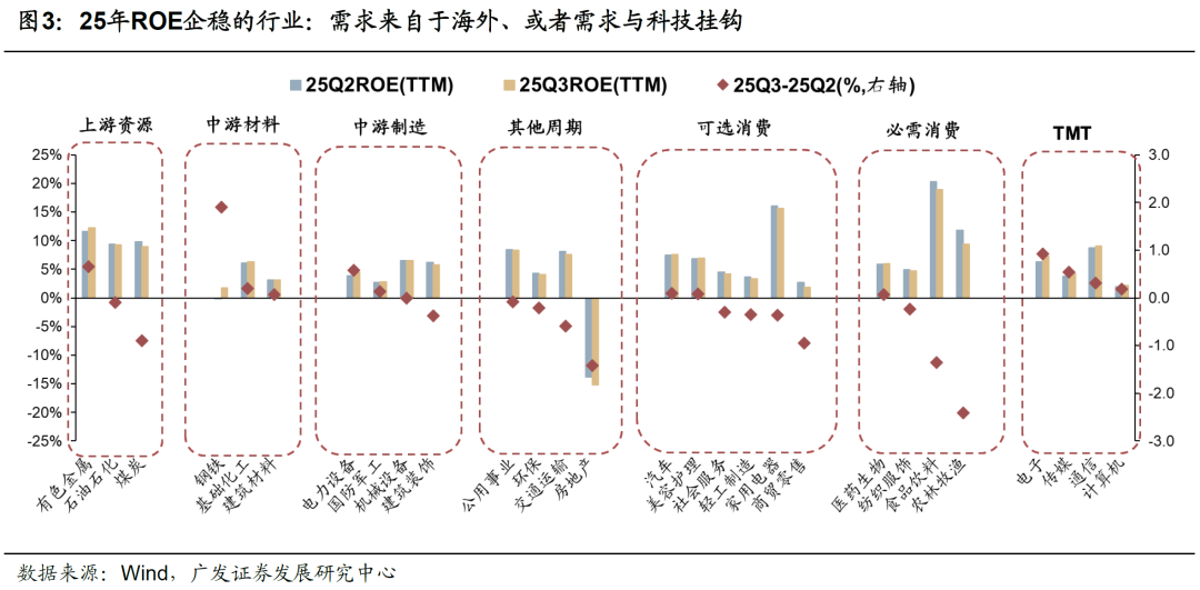 25年ROE改善的行业主要是两类:第一,需求来自于海外;第二,与科技产业挂钩。
