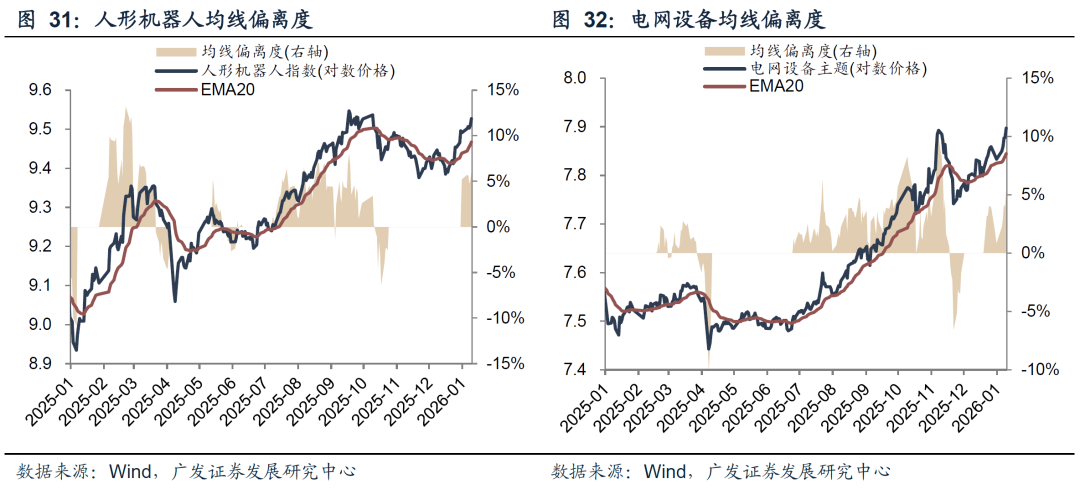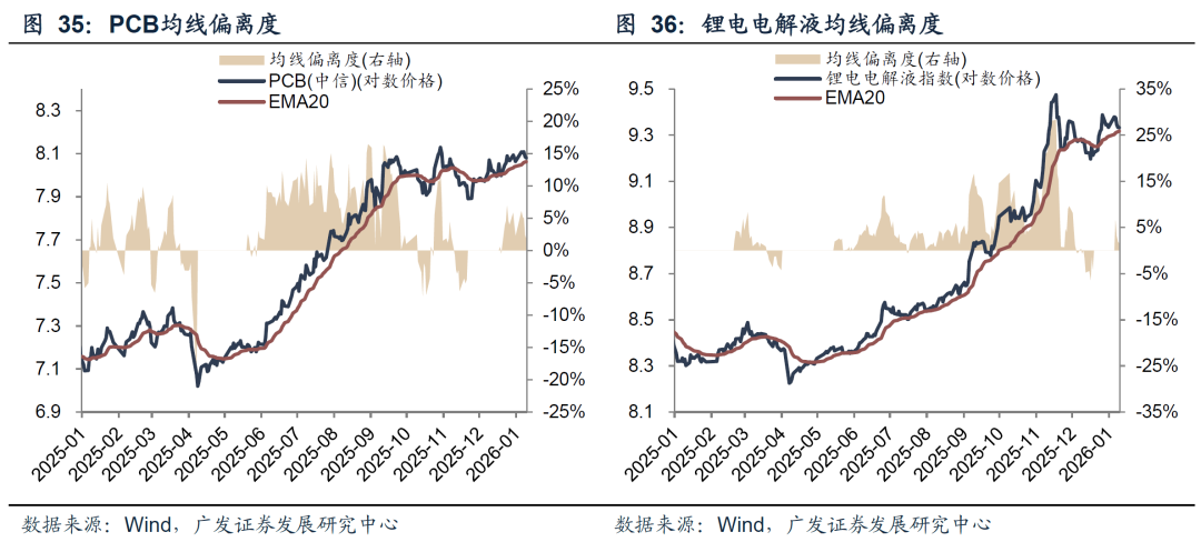 对于重新进入“趋势”阶段的产业主线,依然可以沿用均线偏离度的框架衡量趋势强弱。