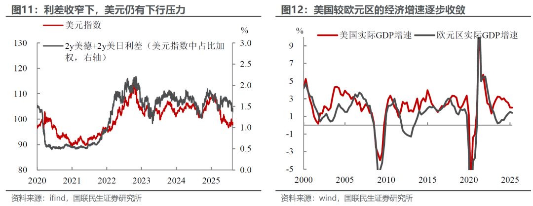 中期的另一助力:弱美元周期将进一步助力资源品价格上行。随着美国与欧日经济体的利差收窄、经济增长预期趋于收敛,叠加中期债务周期的约束,美国经济增长潜力逐步承压,美元贬值趋势或难以避免。,若简单借鉴历史走势,预计至2027年底美元大概率维持相对弱势格局,这将为大宗商品市场提供持续利好支撑。