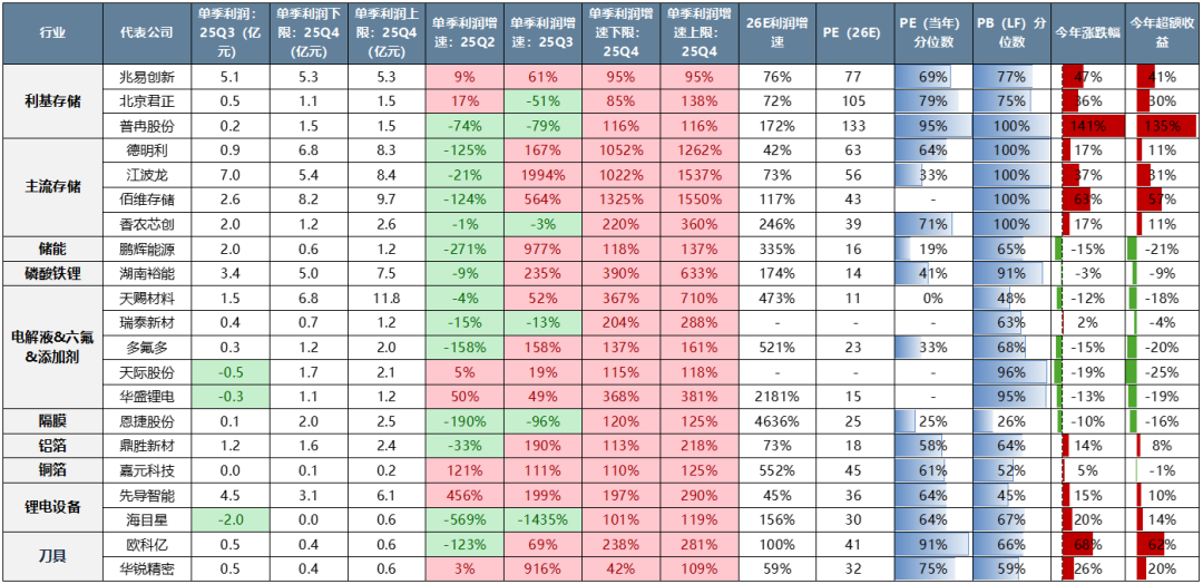 总结来看,Q4锂电、存储继续复苏,主要是AI和储能两个β带动。此外还有刀具等涨价细分。