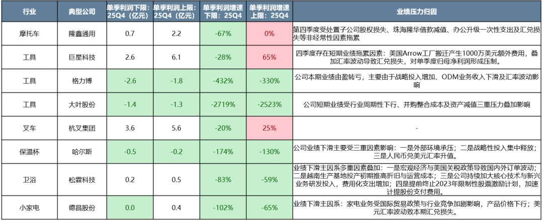 尽管年报预告披露不多,但从已披露公司看,出口链Q4业绩大概率有压力。β层面看,主要影响因素是汇率升值、关税、需求等。