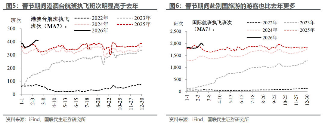 假期拉长也催生出多元消费场景。超长假期不仅拉长了出行窗口,更催生出多元化的消费场景。出境游热度也明显攀升,春节期间港澳台及国际航班执飞班次显著高于2025年同期,泰国、韩国、欧洲成为三大“炙手可热”的目的地。