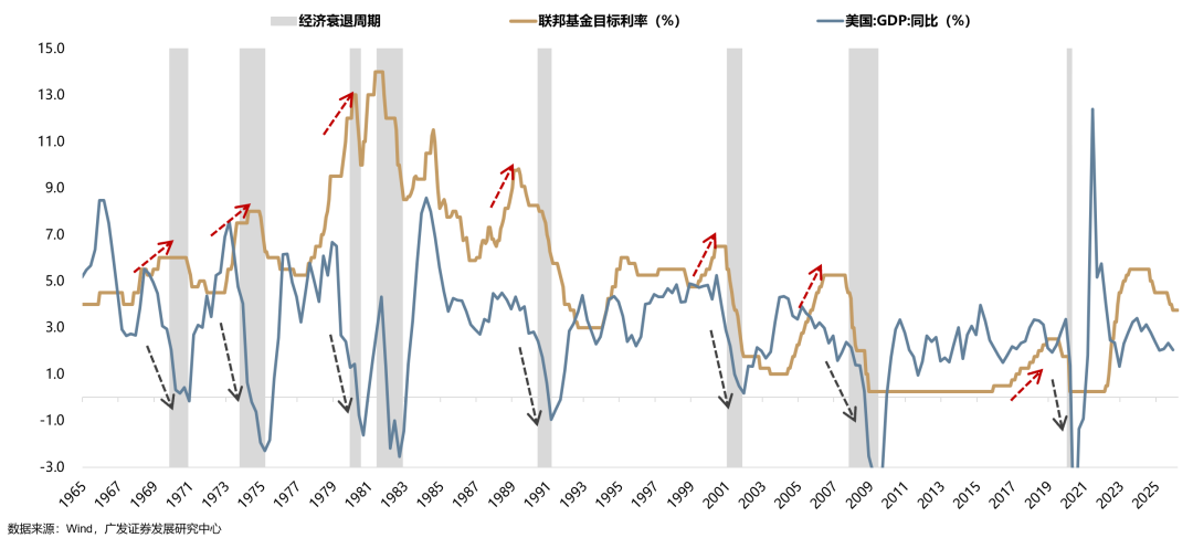 首先,美国的衰退周期,通常是发生在加息周期的末端;而在降息周期中,货币和财政政策,有更多对冲空间,较少形成衰退情形。