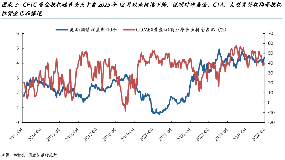 未来将出现一个对黄金有利的新故事。短期关于黄金投机流动性的泡沫出清,反而让未来的上涨更安全。美元信用的定价往往需要催化剂,2022年2月“对俄罗斯技术性违约”、2024年11月“海湖化债框架”、2025年4月“对等关税”犹在眼前。这一轮美国在中东军事上的持久战,是美元信用的第四次消耗战。当市场开始定价输掉中东战争是美国综合国力由盛而衰的标志,黄金将攀上下一个高峰。