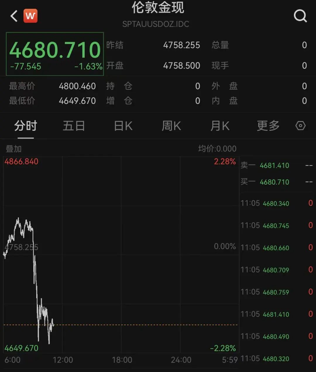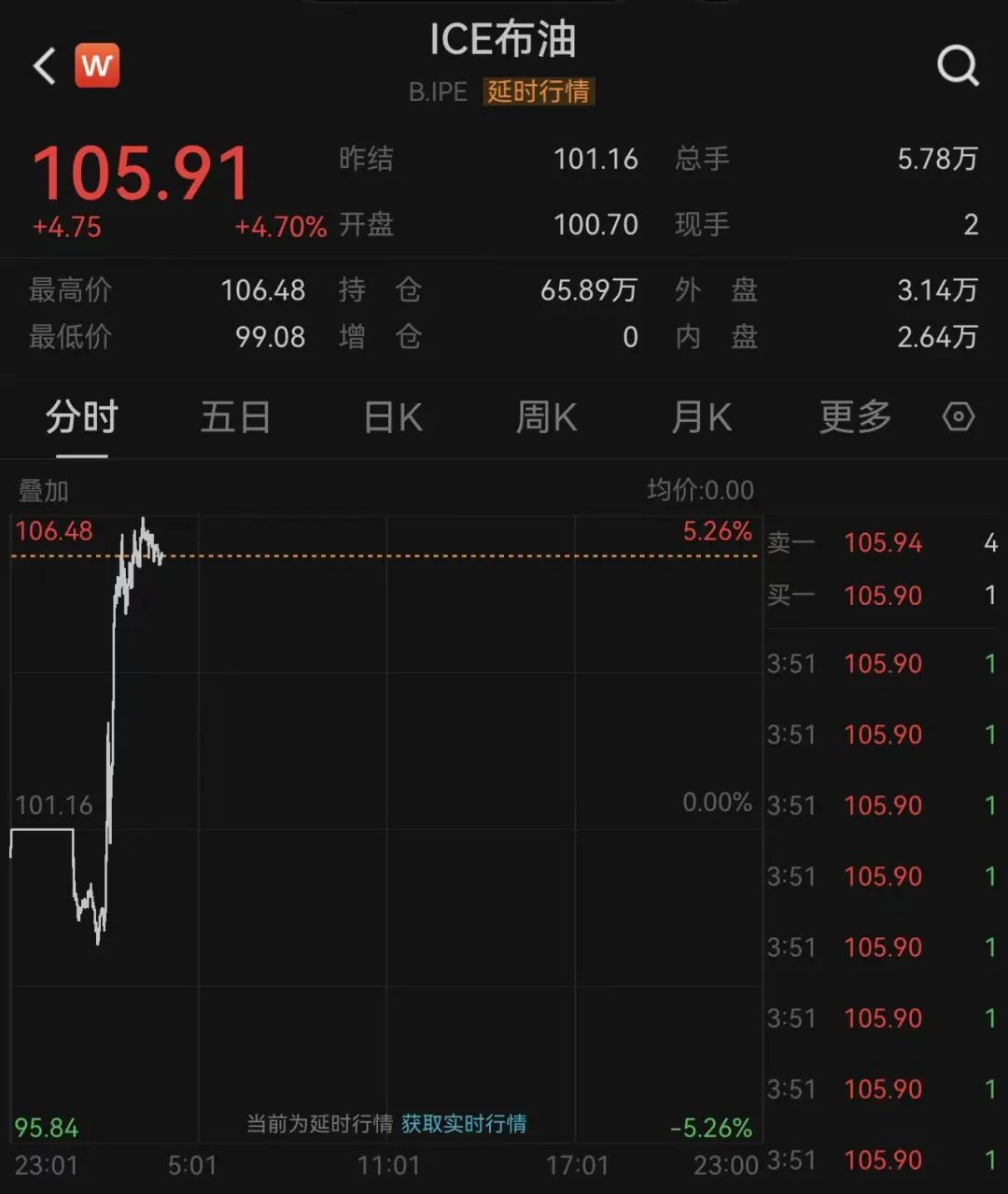 受上述言论影响,全球市场剧烈变动,国际油价突然飙升,布油一度从下跌转为涨超5%,WTI原油涨超4%,截至发稿,布油涨4.7%,WTI原油涨3.75%;金银跳水,伦敦金现一度跌超2%,伦敦银现一度跌超4%。