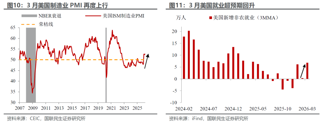 当前,中东局势的影响仍停留在第一阶段——即“通胀上行与供给受阻”的初期,但冲击尚未形成对全球需求的系统性传导。3月美国等全球主要经济体制造业PMI甚至呈现回升态势,这一信号既凸显出市场存在一定的预防式补库特征,企业为应对供应链不确定性提前储备原材料,也意味着短期需求端仍具备一定韧性,尚未出现全面走弱的迹象,为全球经济争取了短暂的缓冲期。