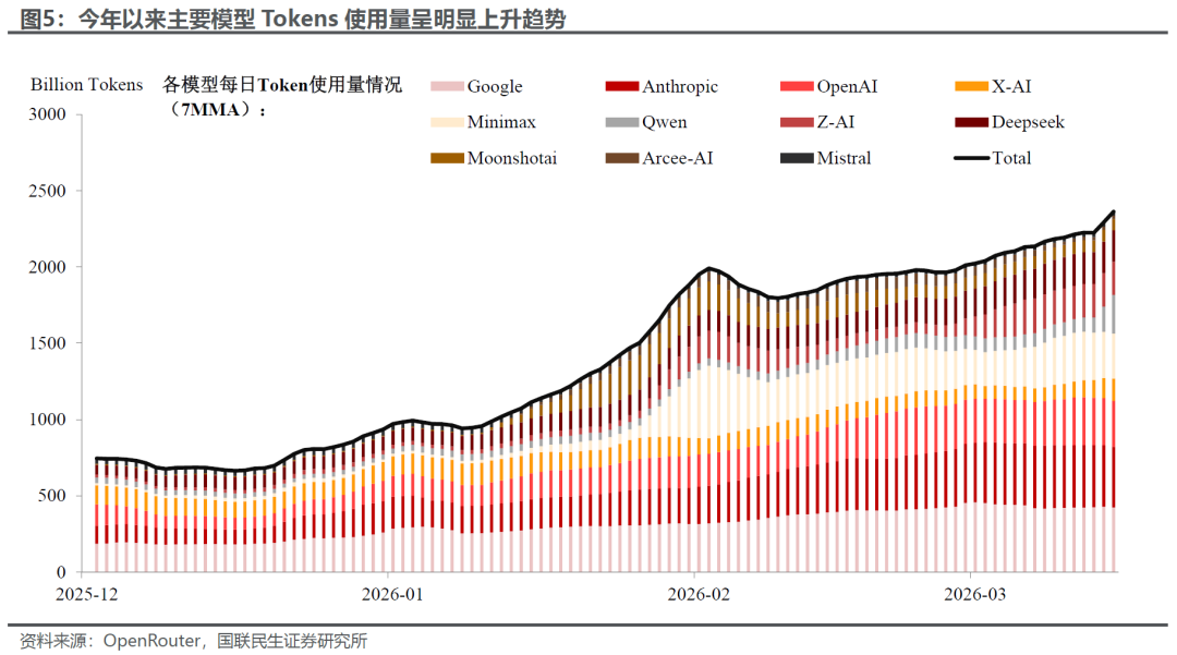 并且当前行业基本面的积极变化,也进一步支撑了AI产业的需求韧性。随着当前Token的消耗量呈现快速放量态势,也让市场重新坚定了对AI产业长期需求空间与盈利韧性的信心。