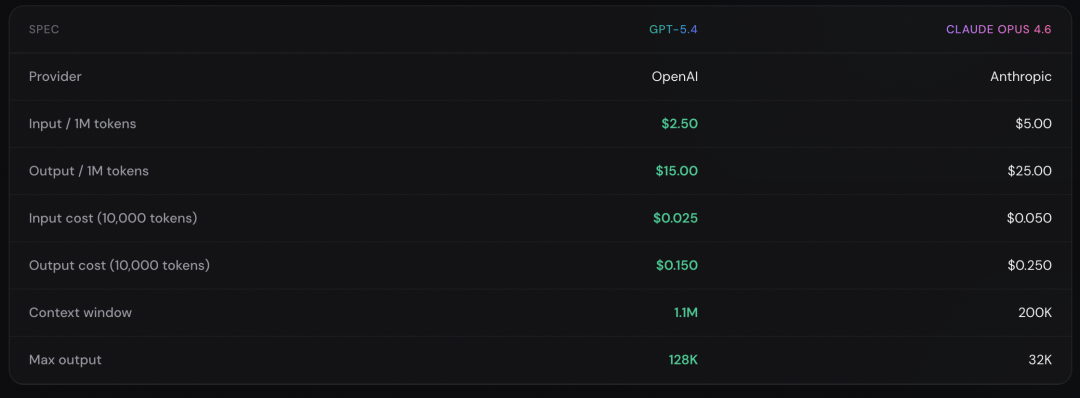 图:GPT5.4和Opus4.6的价格对比
