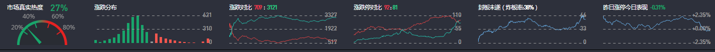 3、两市共709只个股上涨,104只个股涨停,除新股外涨停92只;3121只个股下跌,81只个股跌停。50只股票炸板,炸板率38%。