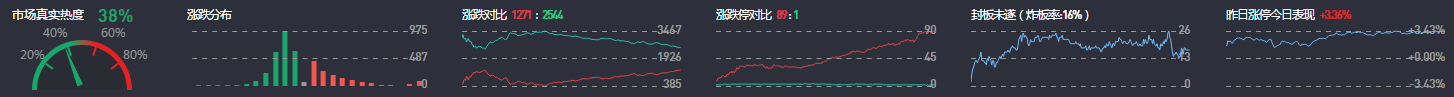 3、两市共1271只个股上涨,96只个股涨停,除新股外涨停89只;2544只个股下跌,1只个股跌停,16只股票炸板,炸板率16%。