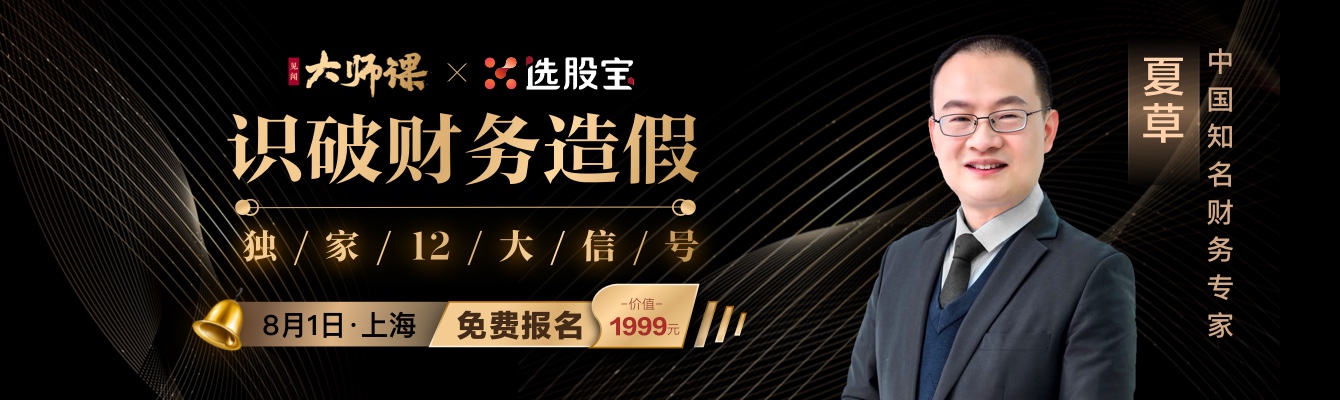 【【限免10席】如何识破财务造假:闭门传授独家12大预警信号】选股宝×大师课 · 8月1日·上海【夏草:一堂课教你如何识破财务诡计】选股宝王牌内参用户免费报名 风险提示及免责条款 市场有风险,投资需谨慎。本文不构成个人投资建议,也未考虑到个别用户特殊的投资目标、财务状况或需要。用户应考虑本文中的任何意见、观点或结论是否符合其特定状况。据此投资,责任自负。