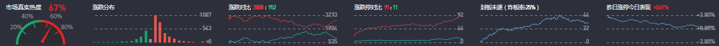 3、两市共2808只个股上涨,93只个股涨停,除新股外涨停91只;952只个股下跌,11只个股跌停,21只股票炸板,炸板率25%。
