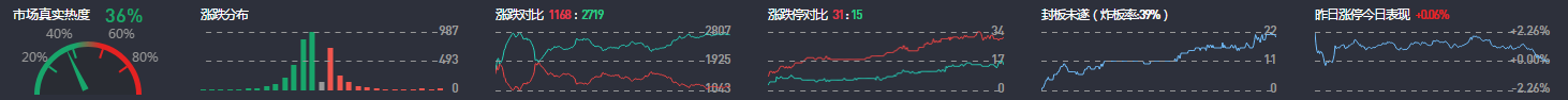 3、两市共1168只个股涨,35只个股涨停,除新股外涨停31只;2719只个股下跌,15只个股跌停,17只股票炸板,炸板率39%。