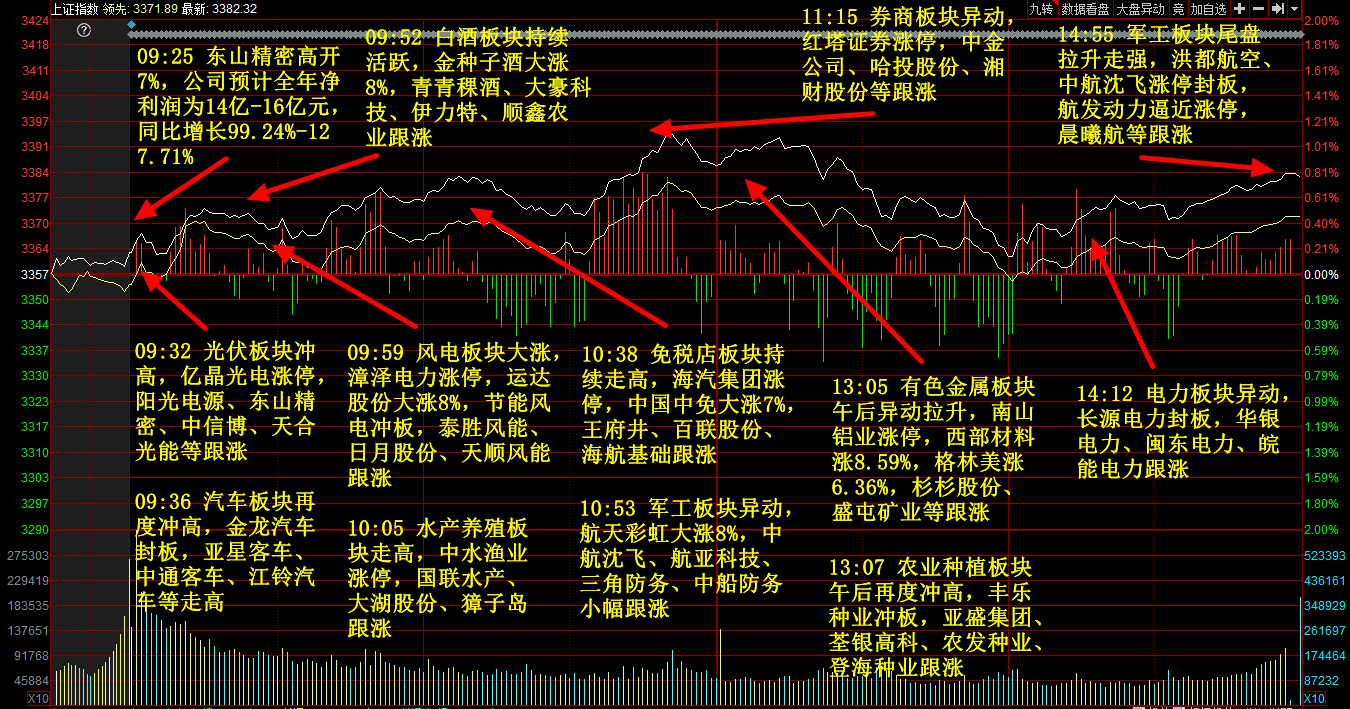主力净流入个股前十:立讯精密、京东方A、紫光国微、长电科技、通威股份、老白干酒、三一重工、中航西飞、红塔证券、航发动力