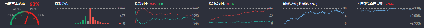 3、两市共2516只个股涨,58只个股涨停,除新股外涨停56只;1383只个股下跌,12只个股跌停,15只股票炸板,炸板率12%。