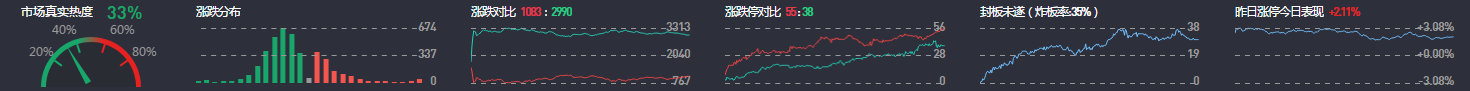 3、两市共1083只个股涨,58只个股涨停,除新股外涨停55只;2990只个股下跌,38只个股跌停,26只股票炸板,炸板率35%。