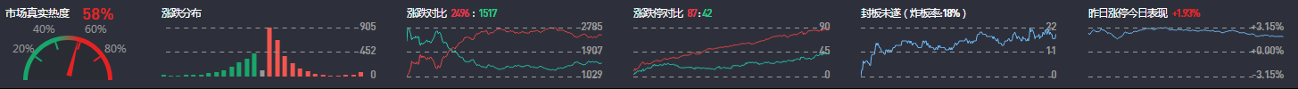 3、两市共2496只个股涨,89只个股涨停,除新股外涨停87只;1517只个股下跌,42只个股跌停,11只股票炸板,炸板率18%。