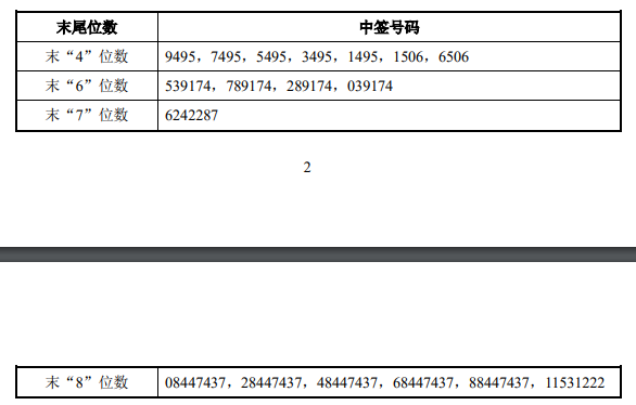 中国黄金:中签号码共有162000个。 风险提示及免责条款 市场有风险,投资需谨慎。本文不构成个人投资建议,也未考虑到个别用户特殊的投资目标、财务状况或需要。用户应考虑本文中的任何意见、观点或结论是否符合其特定状况。据此投资,责任自负。