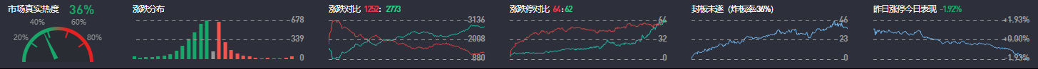 3、两市共1252只个股上涨,64只个股涨停,除新股外涨停62只;2773只个股下跌,62只个股跌停。28只股票炸板,炸板率36%。