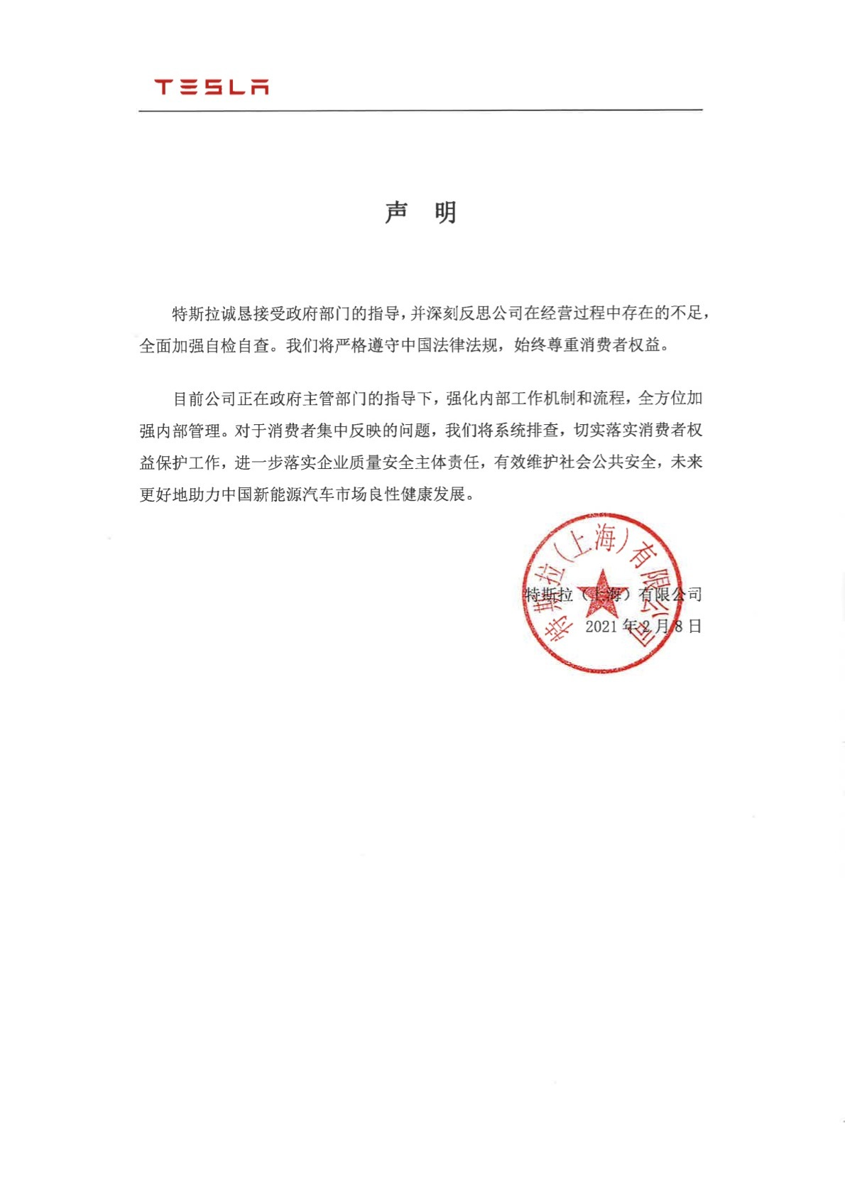 【特斯拉:对于消费者集中反映的问题,将系统排查】特斯拉:诚恳接受政府部门的指导,并深刻反思公司在经营过程中存在的不足,全面加强自检自查。我们将严格遵守中国法律法规,始终尊重消费者权益。目前公司正在政府主管部门的指导下,强化内部工作机制和流程,全方位加强内部管理。对于消费者集中反映的问题,我们将系统排查,切实落实消费者权益保护工作,进一步落实企业质量安全主体责任,有效维护社会公共安全,未来更好地助力中国新能源汽车市场良性健康发展。