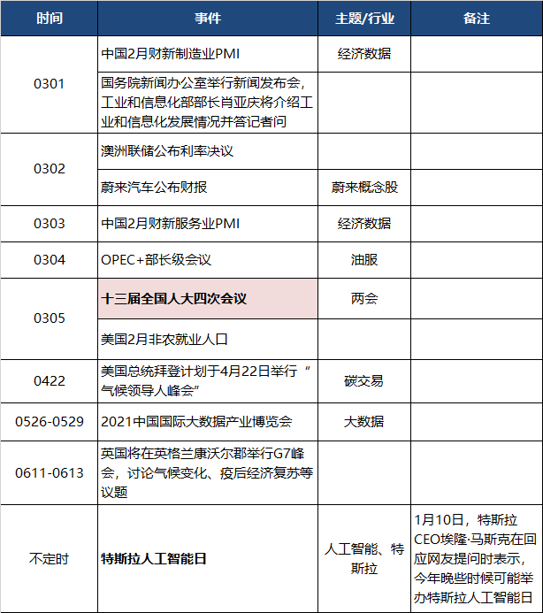 投资日历 | 3月1日-3月7日关注:打新、全国两会、工信部发布会、蔚来财报。 风险提示及免责条款 市场有风险,投资需谨慎。本文不构成个人投资建议,也未考虑到个别用户特殊的投资目标、财务状况或需要。用户应考虑本文中的任何意见、观点或结论是否符合其特定状况。据此投资,责任自负。