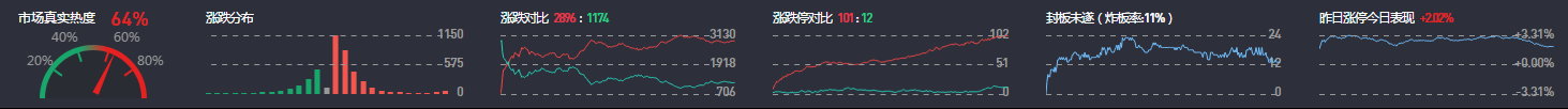3、两市共2896只个股上涨,103只个股涨停,除新股外涨停101只;1174只个股下跌,12只个股跌停。11只股票炸板,炸板率11%。