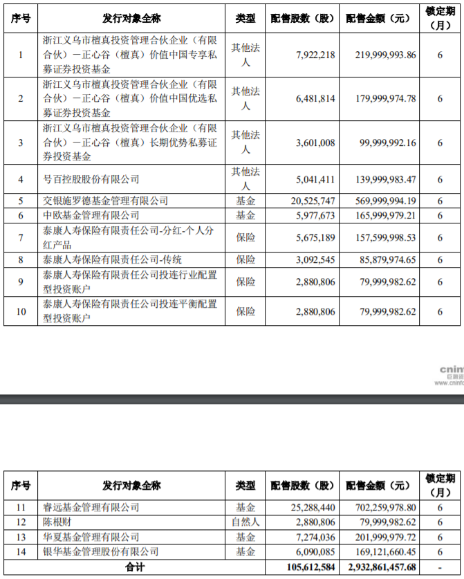 【三七互娱:定增募资总额29.3亿元,睿远基金获配7亿元】三七互娱公布定增情况报告书:发行价格27.77元/股,募资总额29.3亿元,其中睿远基金获配7亿元,号百控股获配1.4亿元。 风险提示及免责条款 市场有风险,投资需谨慎。本文不构成个人投资建议,也未考虑到个别用户特殊的投资目标、财务状况或需要。用户应考虑本文中的任何意见、观点或结论是否符合其特定状况。据此投资,责任自负。