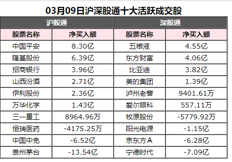 北上资金今日净买入中国平安8.30亿元、隆基股份6.39亿元,净卖出贵州茅台13.54亿元、宁德时代7.09亿元。 风险提示及免责条款 市场有风险,投资需谨慎。本文不构成个人投资建议,也未考虑到个别用户特殊的投资目标、财务状况或需要。用户应考虑本文中的任何意见、观点或结论是否符合其特定状况。据此投资,责任自负。