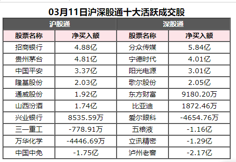 北上资金今日净买入分众传媒5.84亿元、招商银行4.88亿元,净卖出泸州老窖2.17亿元、中国中免1.75亿元。