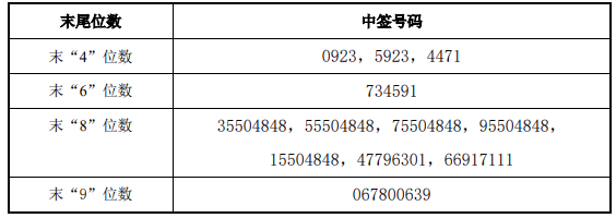同力日升:中签号码共有37800个。 风险提示及免责条款 市场有风险,投资需谨慎。本文不构成个人投资建议,也未考虑到个别用户特殊的投资目标、财务状况或需要。用户应考虑本文中的任何意见、观点或结论是否符合其特定状况。据此投资,责任自负。