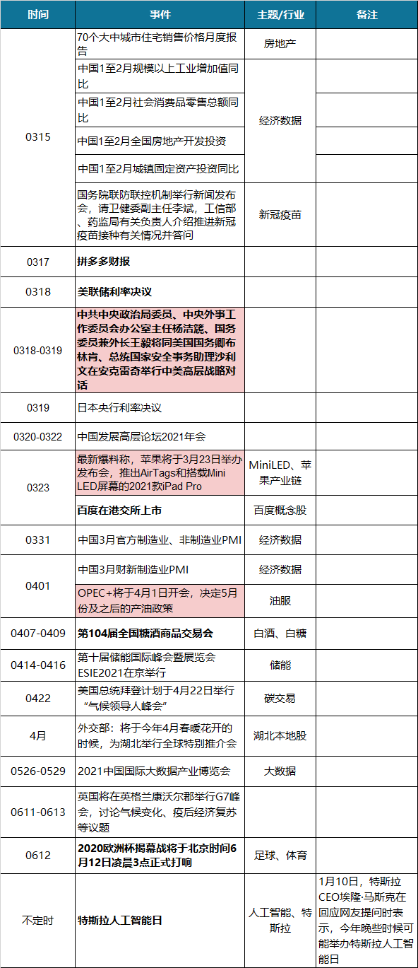 投资日历 | 3月15日-3月21日关注:打新、中国经济数据、中美高层战略对话。 风险提示及免责条款 市场有风险,投资需谨慎。本文不构成个人投资建议,也未考虑到个别用户特殊的投资目标、财务状况或需要。用户应考虑本文中的任何意见、观点或结论是否符合其特定状况。据此投资,责任自负。