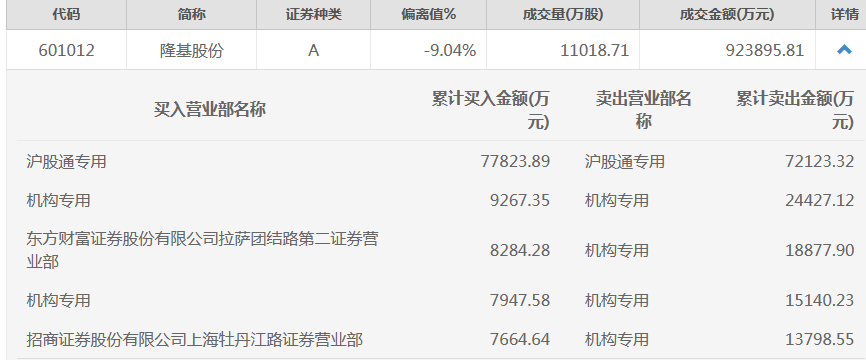 隆基股份跌停,四个机构席位卖出7.22亿元 隆基股份今日跌停,全天成交92亿元。龙虎榜数据显示,四个机构席位合价卖出7.22亿元,两个机构席位买入1.72亿元。北向资金买入7.78亿元并卖出7.21亿元。 风险提示及免责条款 市场有风险,投资需谨慎。本文不构成个人投资建议,也未考虑到个别用户特殊的投资目标、财务状况或需要。用户应考虑本文中的任何意见、观点或结论是否符合其特定状况。据此投资,责任自负。