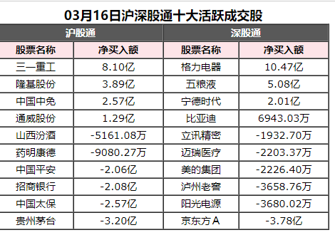 北上资金今日净买入格力电器10.47亿元、三一重工8.10亿元,净卖出京东方A3.78亿元、贵州茅台3.20亿元。 风险提示及免责条款 市场有风险,投资需谨慎。本文不构成个人投资建议,也未考虑到个别用户特殊的投资目标、财务状况或需要。用户应考虑本文中的任何意见、观点或结论是否符合其特定状况。据此投资,责任自负。