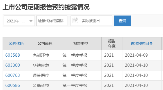 上交所一季报预约披露时间表出炉,高能环境将于4月9日率先披露,华铁应急、通策医疗和金晶科技将于4月10日披露。 风险提示及免责条款 市场有风险,投资需谨慎。本文不构成个人投资建议,也未考虑到个别用户特殊的投资目标、财务状况或需要。用户应考虑本文中的任何意见、观点或结论是否符合其特定状况。据此投资,责任自负。