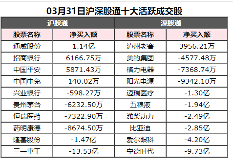 北上资金今日净买入通威股份1.14亿元、招商银行0.62亿元,净卖出三一重工13.53亿元、宁德时代9.73亿元。 风险提示及免责条款 市场有风险,投资需谨慎。本文不构成个人投资建议,也未考虑到个别用户特殊的投资目标、财务状况或需要。用户应考虑本文中的任何意见、观点或结论是否符合其特定状况。据此投资,责任自负。