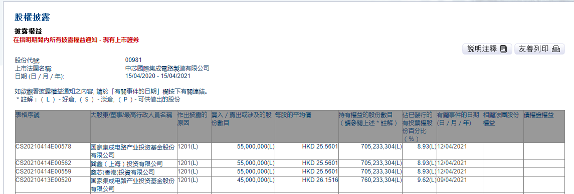 港交所数据显示,国家集成电路产业投资基金在4月9日、12日合计减持1亿股中芯国际港股,持股比例降至8.93%,减持平均价分别为26.15港元、25.56港元。 风险提示及免责条款 市场有风险,投资需谨慎。本文不构成个人投资建议,也未考虑到个别用户特殊的投资目标、财务状况或需要。用户应考虑本文中的任何意见、观点或结论是否符合其特定状况。据此投资,责任自负。