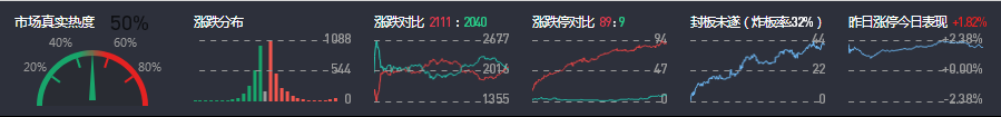 3、两市共2111只个股上涨,89只个股涨停,2040只个股下跌,9只个股跌停,20只股票炸板,炸板率32%。