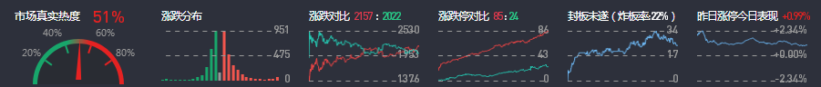 3、两市共2157只个股上涨,85只个股涨停,2022只个股下跌,24只个股跌停,16只股票炸板,炸板率22%。